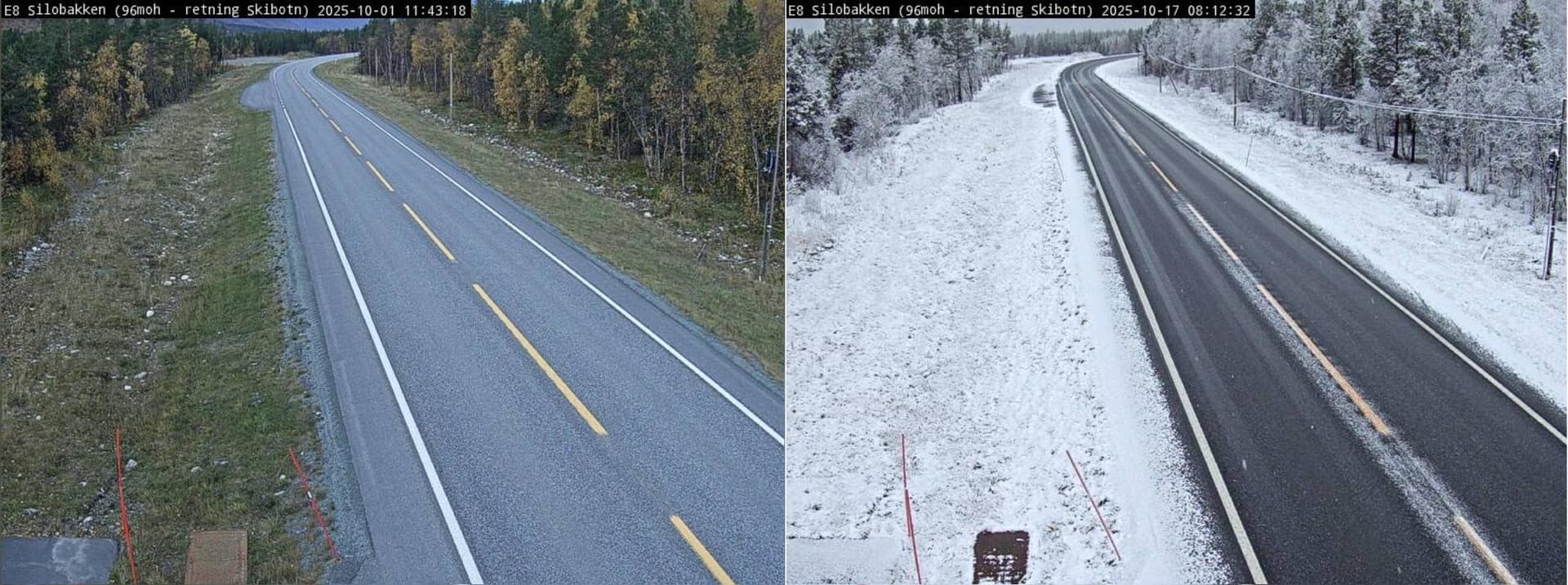 Du côté de la Scandinavie, c'est notamment sur les reliefs que l'hiver s'installe véritablement en cette période de l'année. Sur les reliefs non loin de Skibotn, le changement fut radical entre le début du mois et ce 17 octobre.