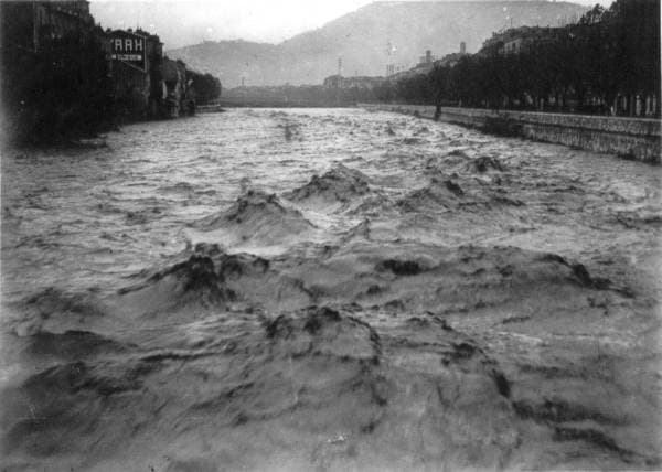 Le Paillon en crue le 17 Novembre 1940 en plein centre-ville de Nice - Via nissalabella.net