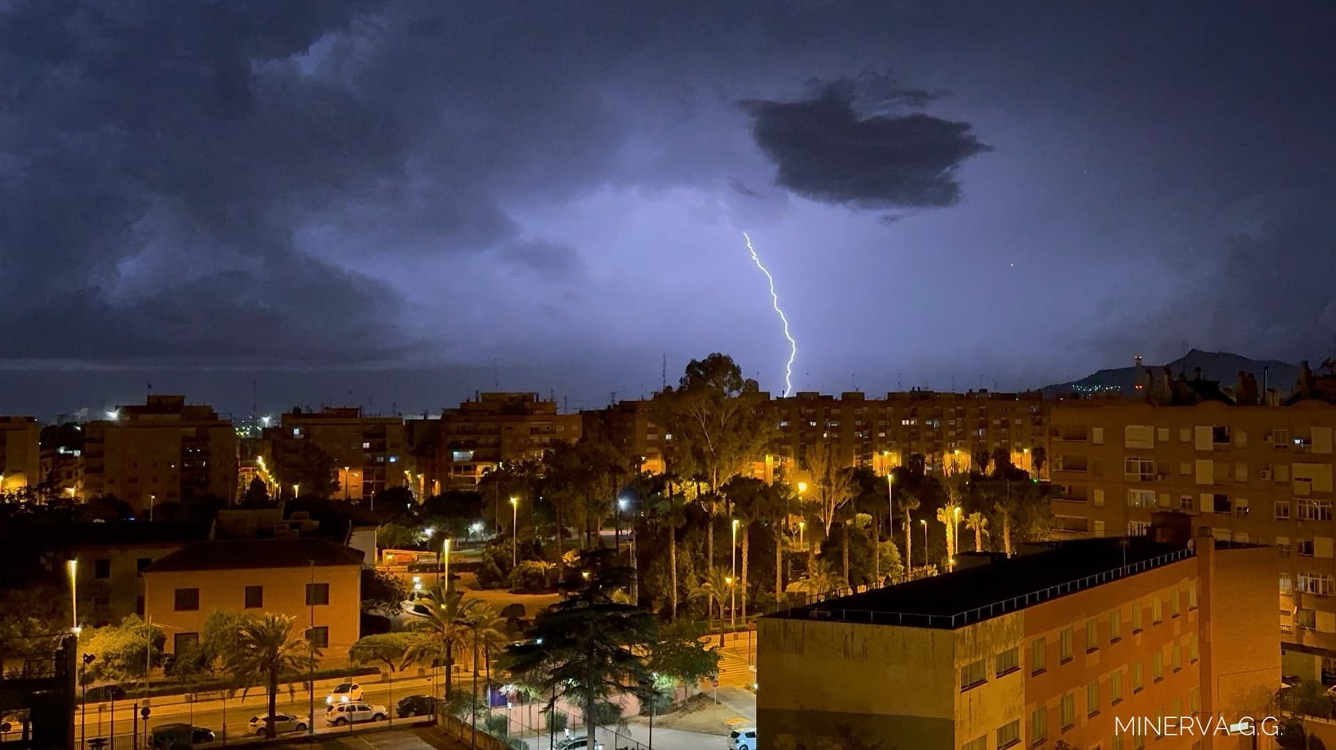 Orage nocturne sur la commune du Port de Sagunt sur la côte est de l'Espagne dans la nuit du 28 au 29 septembre 2025 – Photo via Twitter @minervagra